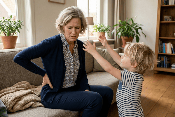 "Oma heeft pijn in haar rug, lieverd," mompelde ik, terwijl ik probeerde mijn tranen weg te slikken.