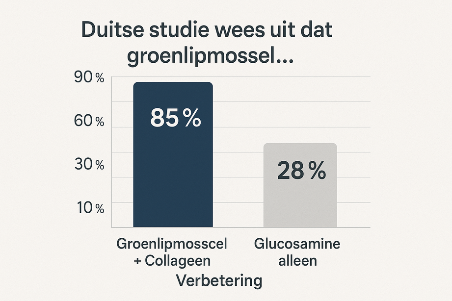 Een Duitse studie wees uit dat groenlipmossel gecombineerd met collageen type II tot 3x effectiever is dan glucosamine alleen.